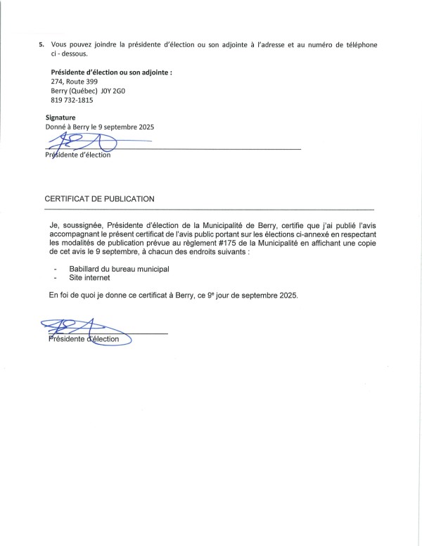 Avis public d'élection
