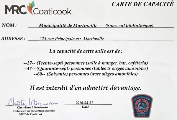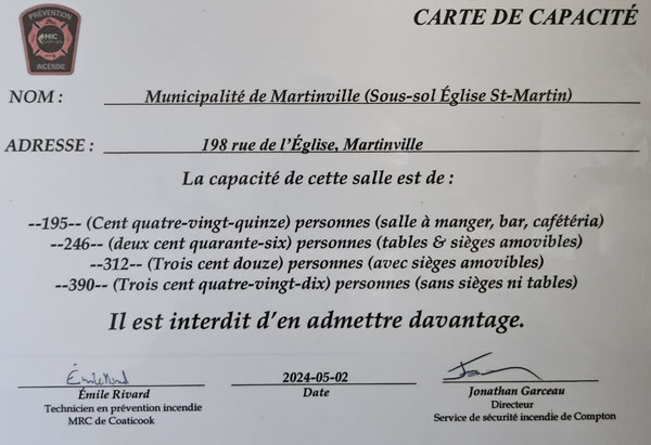 | Sous-sol du 233 rue Principale Est (Bureau municipal) |