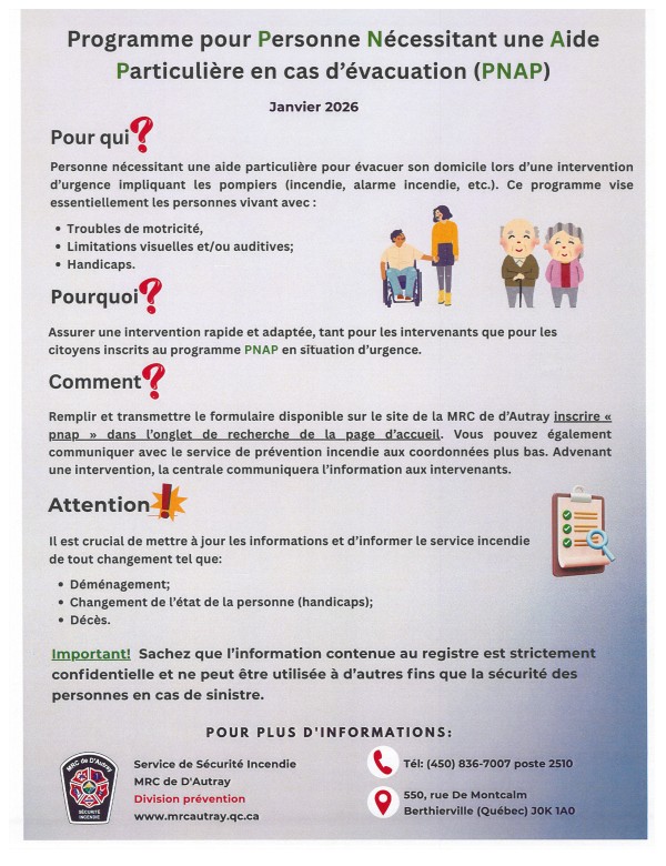 Retour Programme pour Personne Nécessitant une Aide Particulière en cas d'évacuation (PNAP) Date de création: 2023-01-19