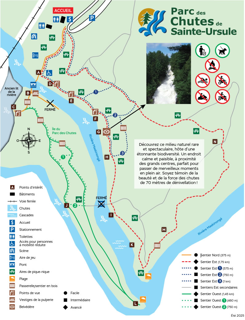 Le Parc des Chutes de Sainte-Ursule est l'endroit de détente par excellence, où les gens se font bercer au son des chutes de 70 mètres de dénivellation. Avec les nombreux sentiers pédestres, les visiteurs peuvent suivre le cours de la rivière Maskinongé ou tout simplement découvrir les splendeurs de la forêt : milieu humide, forêt de conifères variés où on retrouve plusieurs espèces de champignons, forêt mixte et différentes espèces d'oiseaux à observer. Des splendeurs naturelles qui sauront ravir tous vos sens!